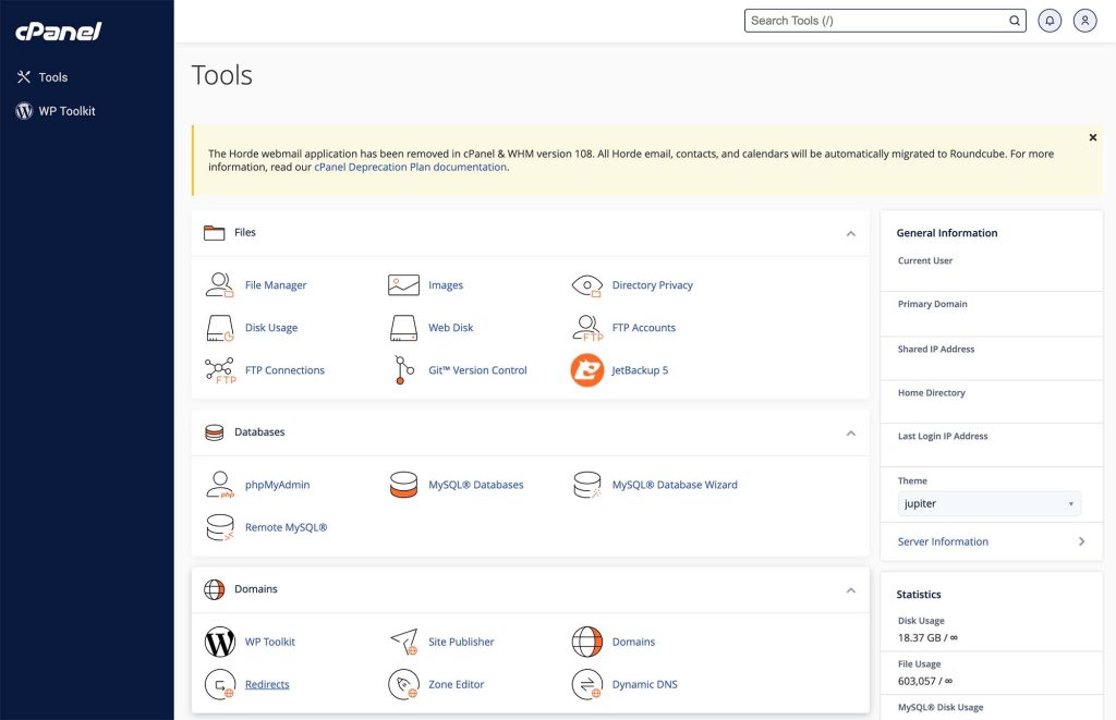 This screen, whilst it may look daunting to a novice user (BUTTONS EVERYWHERE!), is actually very simple. We have guides on how to use every aspect of the cPanel interface over here; however what you’re interested in right now is down near the bottom of the cPanel interface, so scroll down!