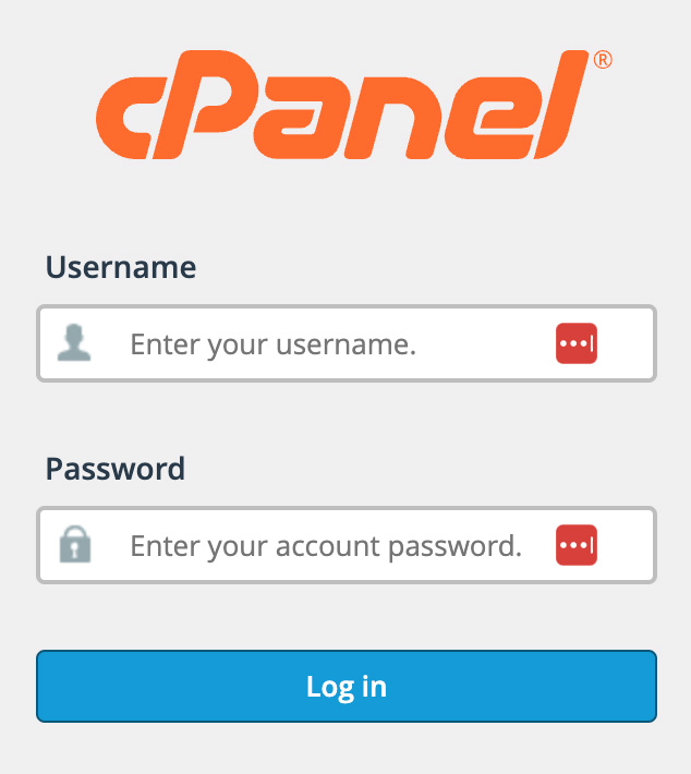 Head to the cPanel login URL detailed in your hosting account welcome email, then input your details and click “Log in”: