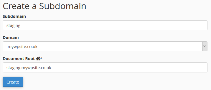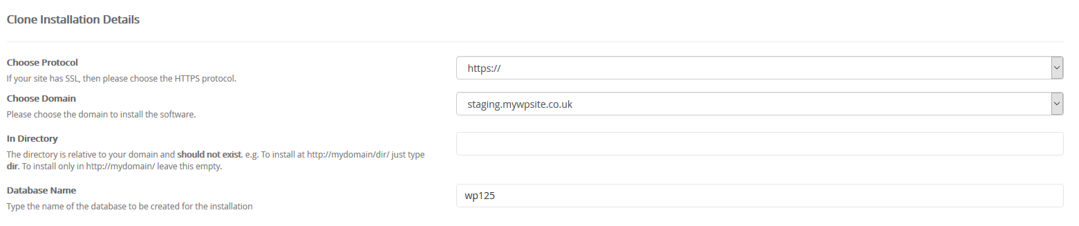 Click the “Create Staging” link next to the install you want to copy to a staging environment